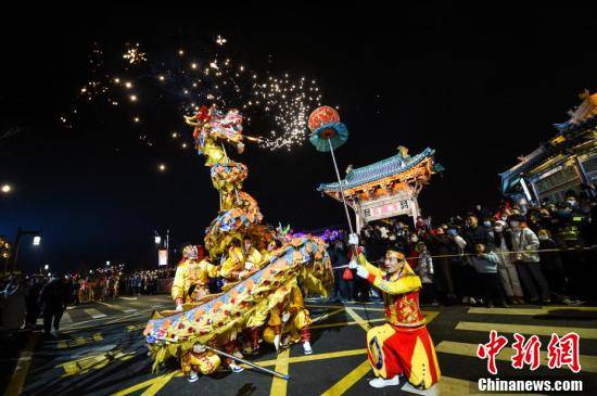 传统民俗舞龙表演。