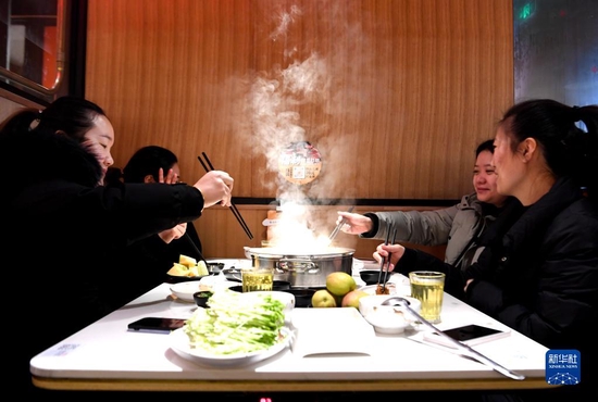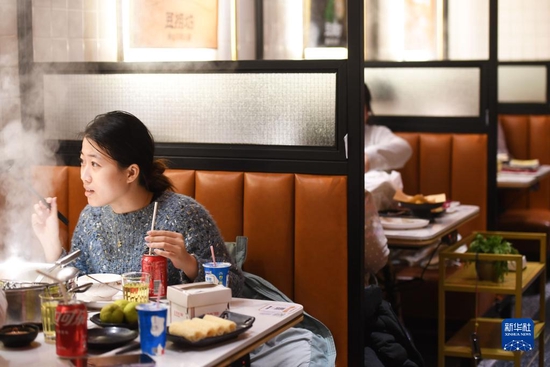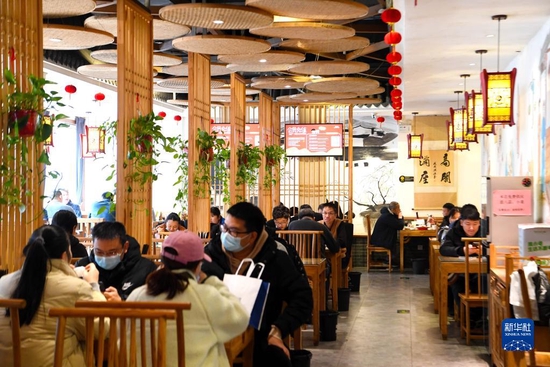 1月25日,市民在郑州市金水区一家餐厅内用餐。