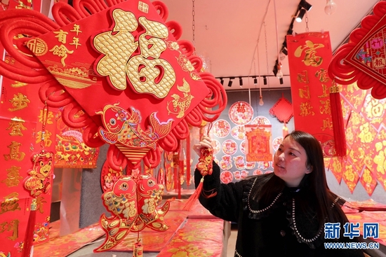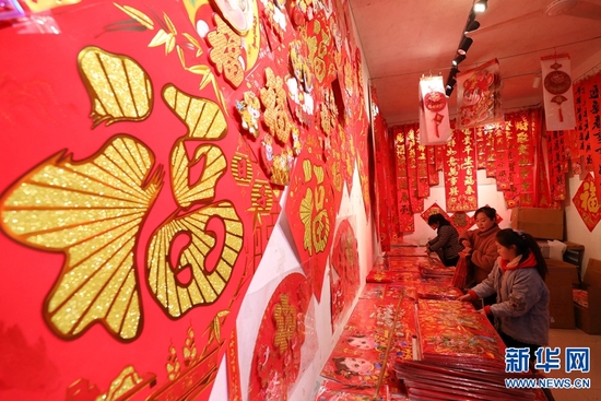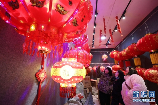 春节临近,河南省焦作市温县城乡年货市场红红火火,喜庆的灯笼、春联、窗花和中国结等饰物俏销,城乡居民忙着置办传统年货,喜迎新春佳节。新华网发(徐宏星 摄)