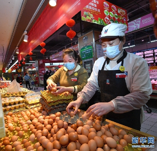 据介绍,此次投放为期5天,投放的猪肉按市场价格投放,鸡蛋、蔬菜价格均低于市场价10%-25%。新华网发(丁友明 摄)