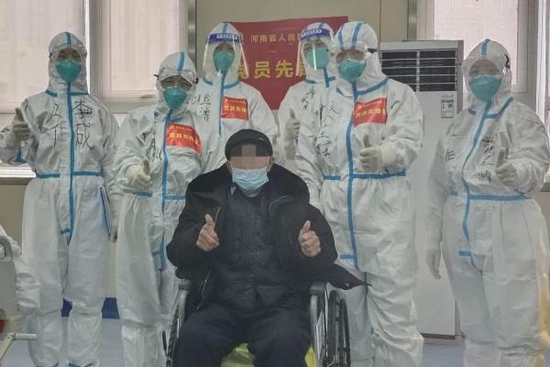 在医护人员无微不至的照护下,老人一天天好转。“出院喽!回家过年了~”,1月25日,听到这个好消息,老人激动地穿好了衣服,等着跟家人团聚。出发前,他对身后的医护人员竖起两只大拇指表示感谢。