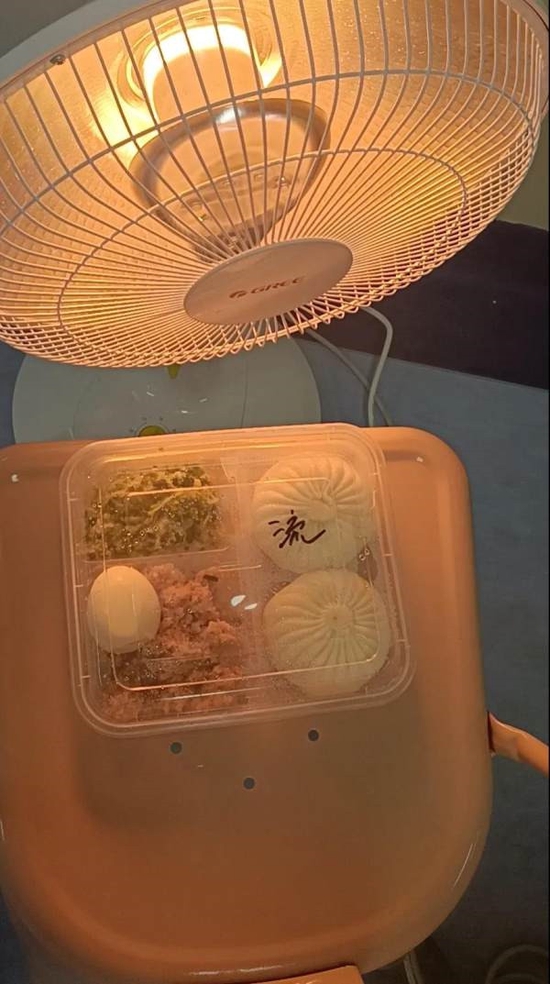 天气寒冷,饭从餐厅到病房又要层层周转,当时病房里还没有微波炉,为了让老人的饭更热乎一点,医生方宏超和护士朱立明每次都把饭在电暖器前烤一烤,这个举动让老人感觉很温暖。