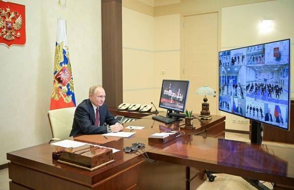 当地时间2022年1月25日,俄罗斯莫斯科,俄总统普京在官邸与即将参加北京冬奥会的运动员们视频连线。(视觉中国)