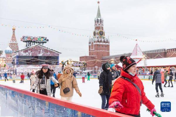 1月26日,人们在俄罗斯首都莫斯科古姆百货商场滑冰场滑冰。