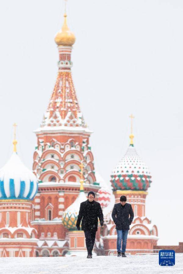 1月26日,两名男子在俄罗斯首都莫斯科红场漫步。