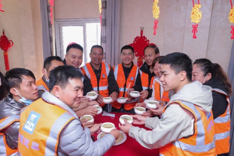 展开剩余56%随后,工人们在项目部的餐厅里围着桌子包饺子。剁馅、调味,捏角、下锅……热腾腾的饺子在锅里翻滚,香味在餐厅弥漫开来。说笑间便已装满几大盘。