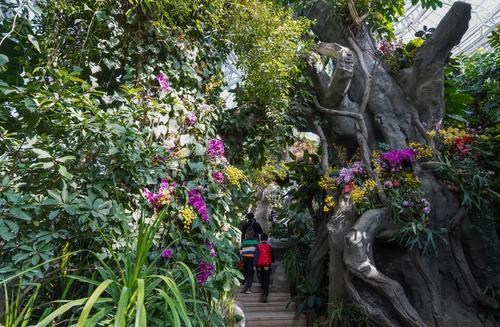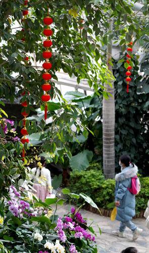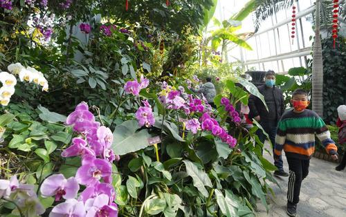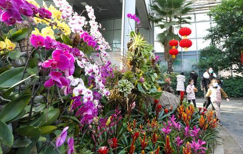 2022年1月31日,春节假期第一天,当天阳光灿烂,气温回升,郑州植物园内游客众多。“绿满商都花绘郑州”2022年郑州植物园迎春花展正在热带植物展览温室举行,免费开放。郑报全媒体记者 马健 图