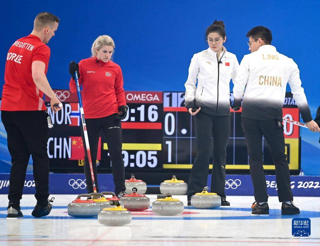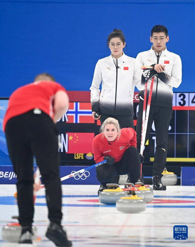 当日,在北京国家游泳中心“冰立方”举行的北京2022年冬奥会冰壶混双循环赛比赛中,中国队以6:9不敌挪威队。