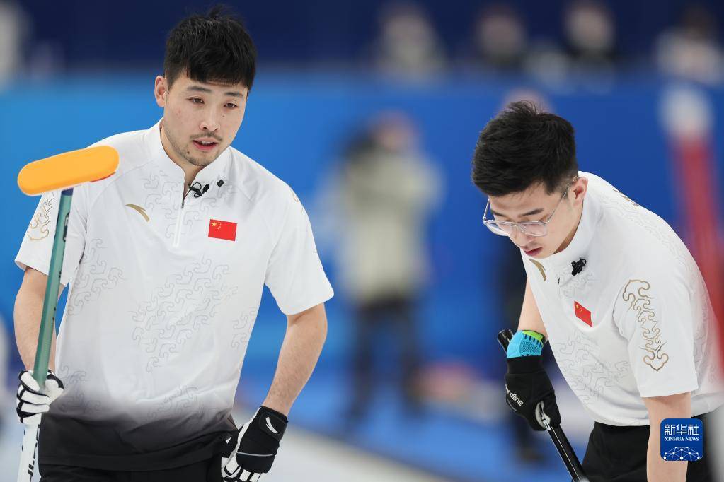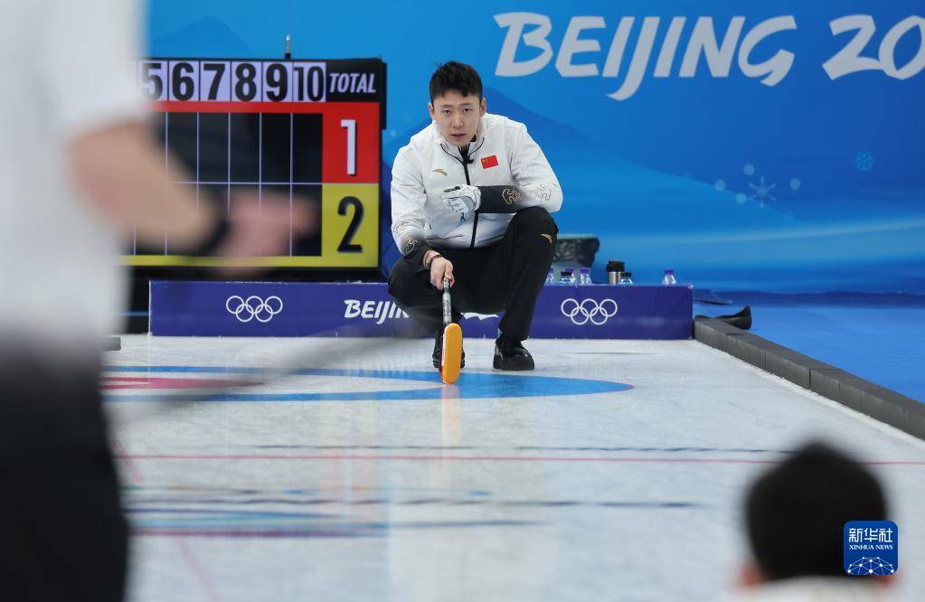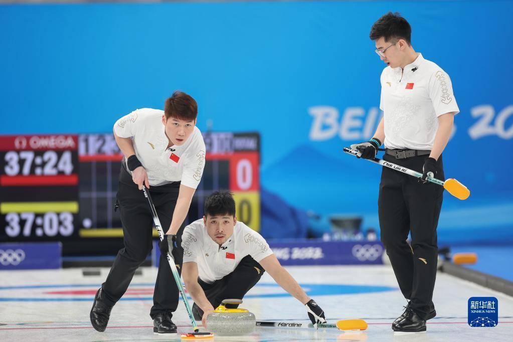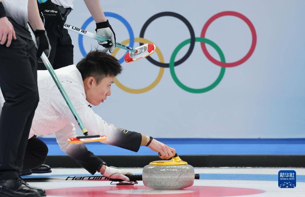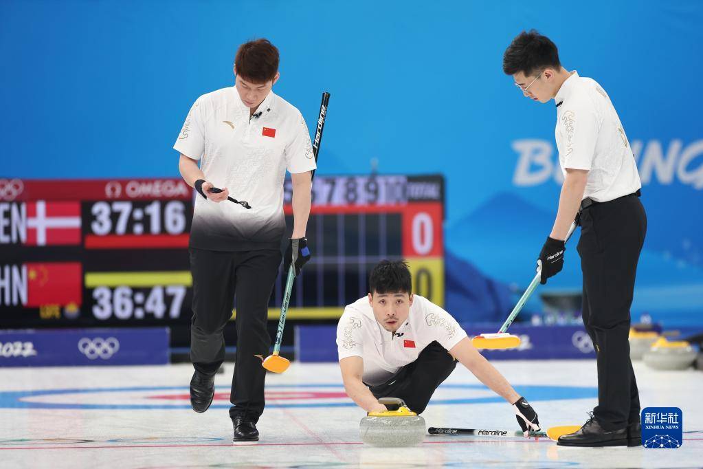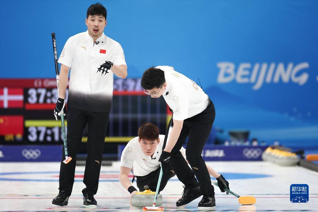 当日,在北京国家游泳中心“冰立方”举行的北京2022年冬奥会冰壶男子循环赛中,中国队以5比4战胜丹麦队。