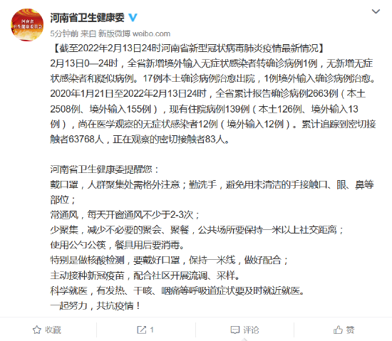 [截至2022年2月13日24时河南省新型冠状病毒肺炎疫情最新情况]