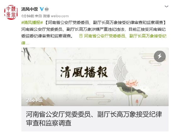 河南省公安厅党委委员、副厅长高万象接受纪律审查和监察调查