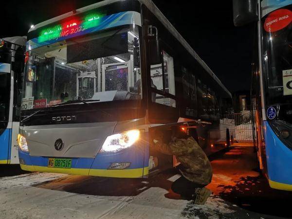 张家口赛区福田欧辉工作人员发车前提前着车/福田欧辉供图