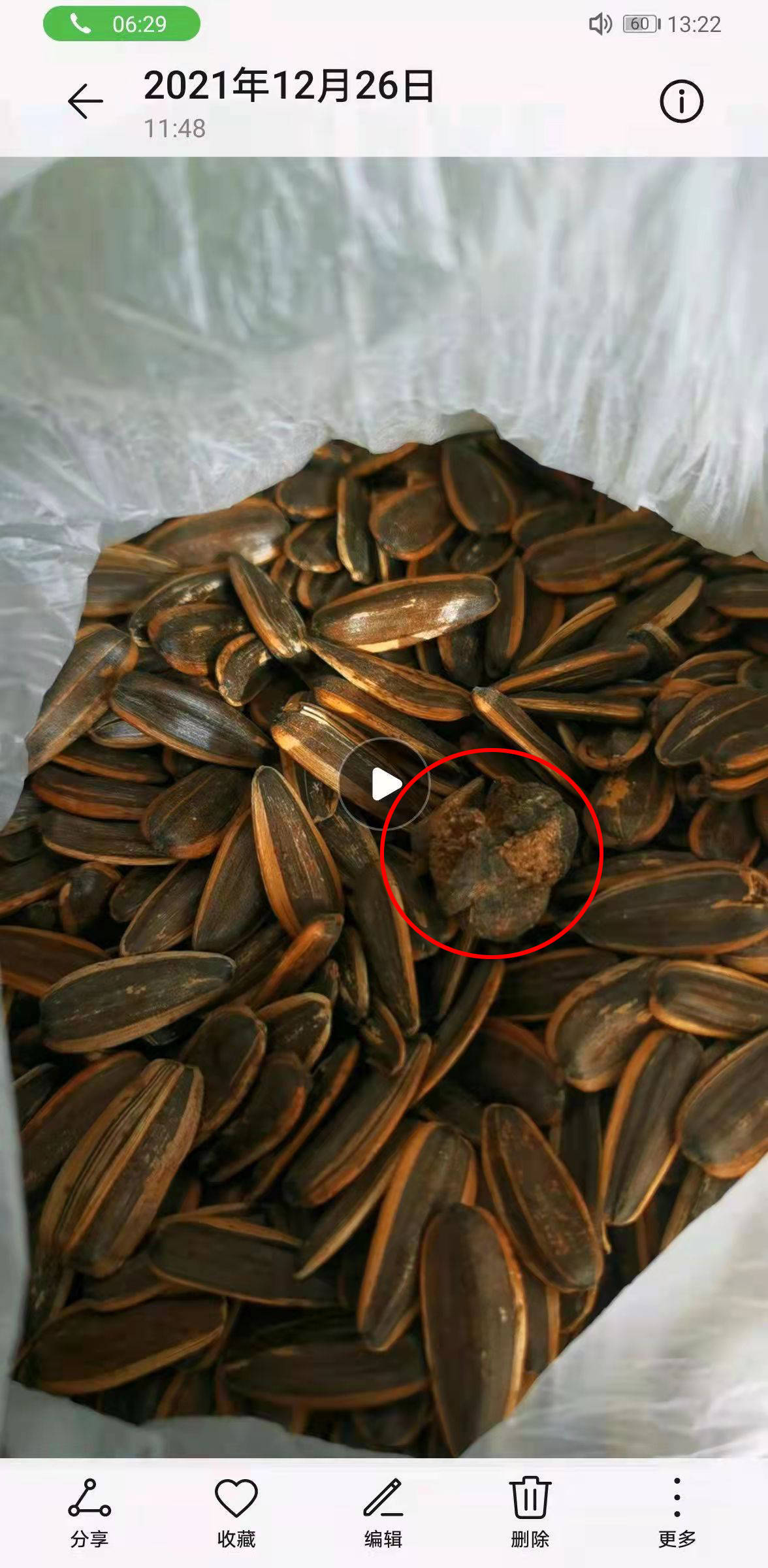 展开剩余59%让李先生没想到的是,他回家嗑了部分瓜子后,在剩余的瓜子中发现了一粒黑褐色的异物,“我小时候放过羊,所以很肯定这就是羊粪球。发现的时候我已经吃了一些瓜子了,这换谁都受不了。”李先生说,瓜子中出现的异物一度让他感到十分恶心。