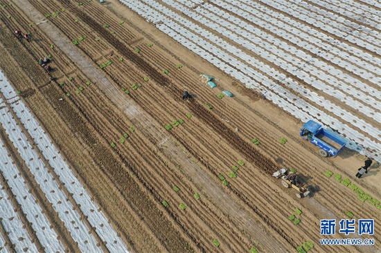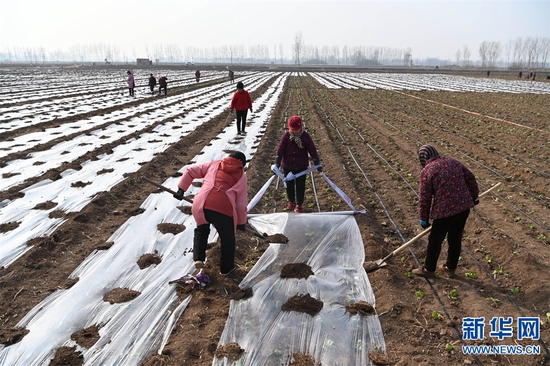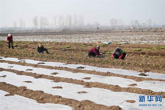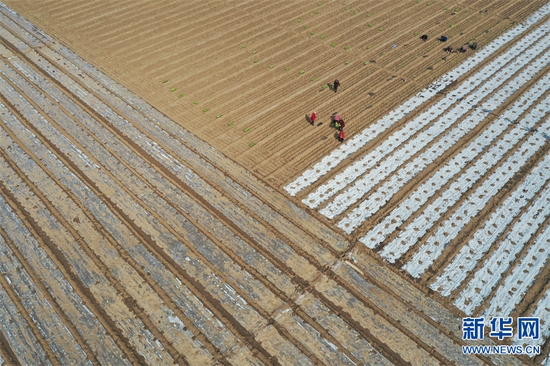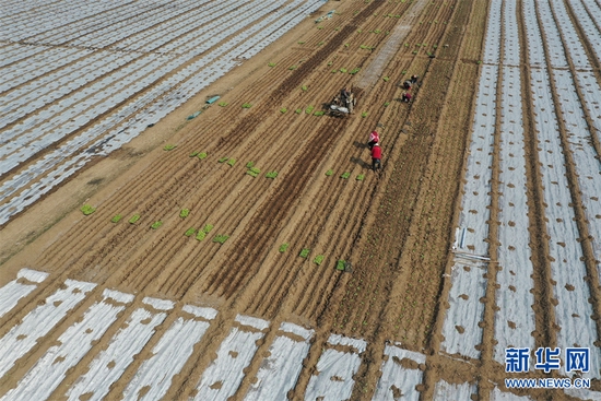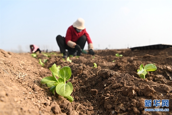 2月19日,河南省沁阳市柏香镇肖寺村,村民在田间栽植蔬菜种苗。