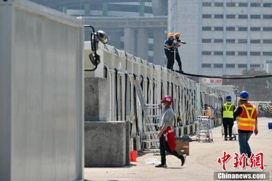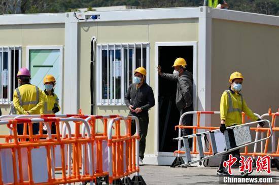 2月27日,香港第五波疫情持续严峻。位于香港青衣的隔离设施(即“方舱医院”)预计于下周率先完工,并立刻投入使用。青衣“方舱医院”占地面积约6万平方米,可容纳超过3800张床位。图为青衣“方舱医院”。