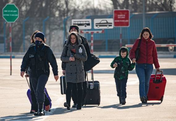 2月25日,一些乌克兰民众抵达摩尔多瓦边境的帕兰卡检查站。新华社/卫星社