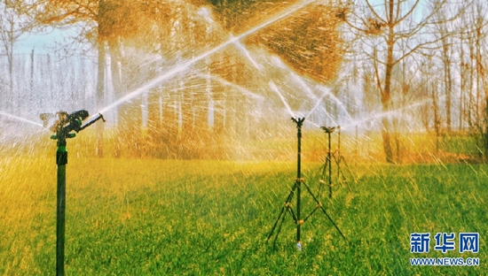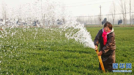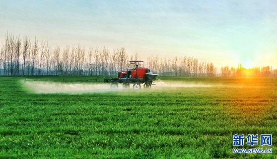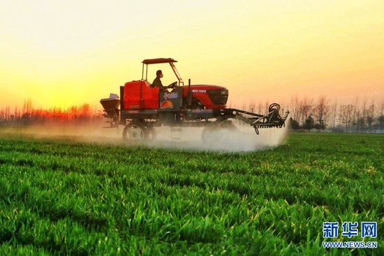 近日,随着气温回升,河南省柘城县农民抢抓农时,积极进行春季麦田管理,为夏粮丰产丰收打基础。新华网发(张子斌 摄)