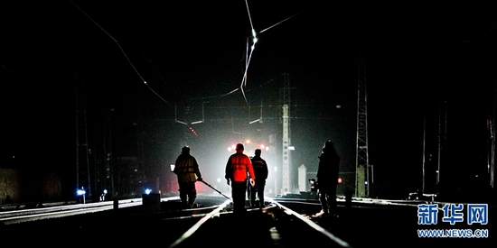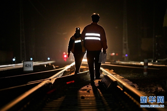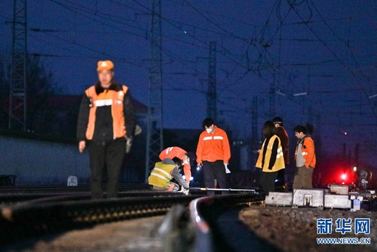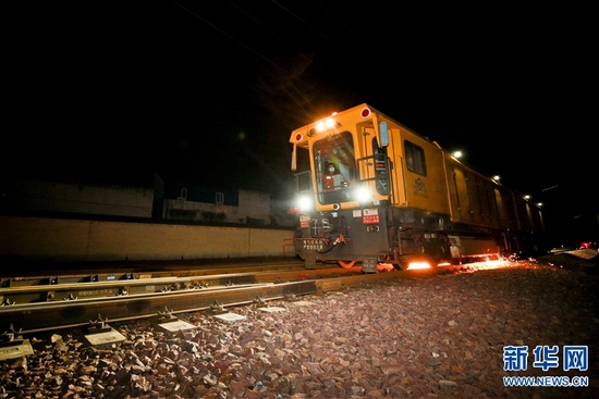 当日凌晨,中国铁路郑州局集团有限公司南阳工务段组织19余名干部职工利用210分钟的“天窗”期,对邓州站南岔区部分正线道岔进行打磨整修,确保春季铁路运行平稳、安全、舒适。新华网发(张中海 摄)