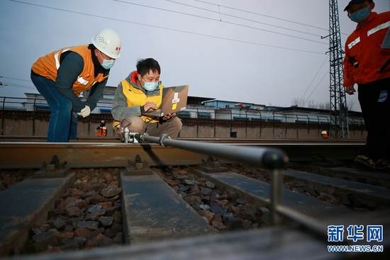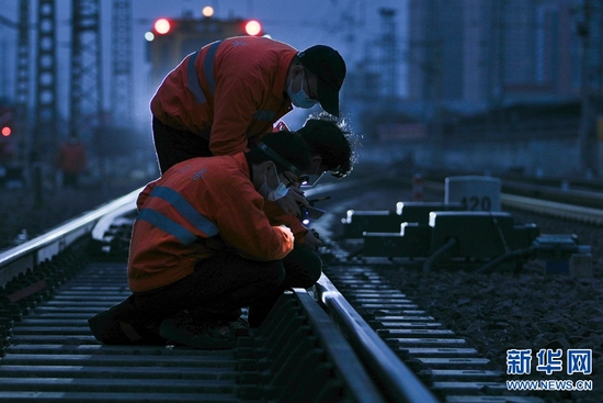 3月1日,焦柳铁路邓州站,南阳工务段的职工正在对道岔进行打磨整修作业。