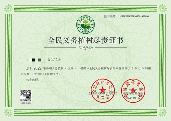 除了现场植树,河南省林业局推出了“云植树”活动,持续受到市民热捧。登陆河南全民义务植树网,参与募捐的形式也能线上完成“绿色心愿”,还能生成一张植树义务尽责证书,晒出森林小卫士的荣誉!