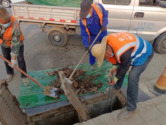 针对雨水管网,惠济区城市管理局采取人工、机械相结合的方式,先通过人工作业将检查井、雨水收水井内淤积物进行清掏外运,然后用管道疏通车加压冲洗雨水管道。通过拉网式的清淤疏通,保证城区雨水管网的畅通,减少市政道路积水对市民出行的影响。