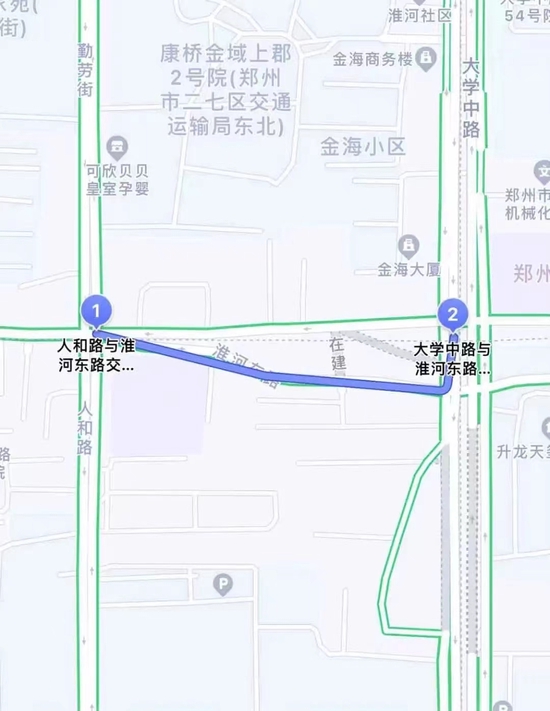 封闭路段:占用淮河路南侧原有机动车道。并对淮河路(人和路-大学中路)南侧机动车道进行全幅封闭。