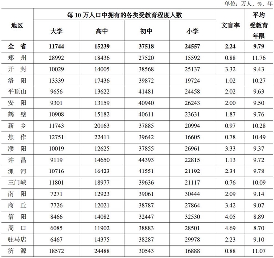 第七次河南人口普查数据解读:我省人口受教育情况不断改善